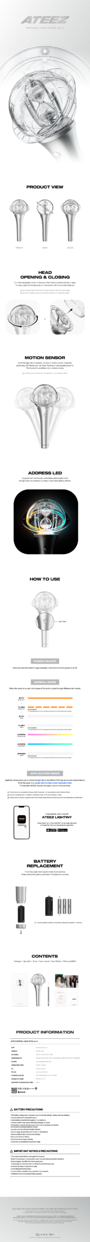 ATEEZ - OFFICIAL LIGHT STICK VER.3 es la tercera versión de lightstick oficial del grupo de K-POP Ateez. Este producto incluye accesorios exclusivos y está disponible en pre-order con fecha de lanzamiento prevista para el 10 de junio de 2026.