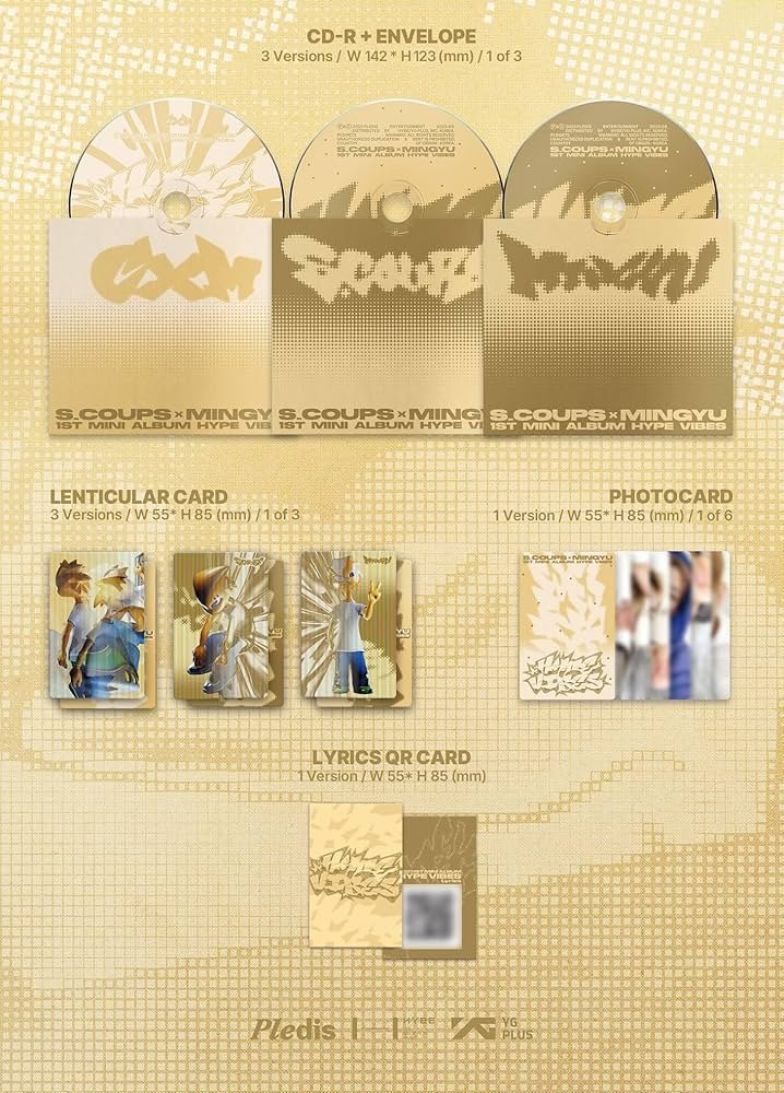 ¡La potencia visual de SEVENTEEN se une en una colaboración explosiva! Hazte con la Compact Ver. de HYPE VIBES, una pieza de colección esencial que captura la sinergia inigualable entre S.COUPS y MINGYU en un formato exclusivo y limitado.