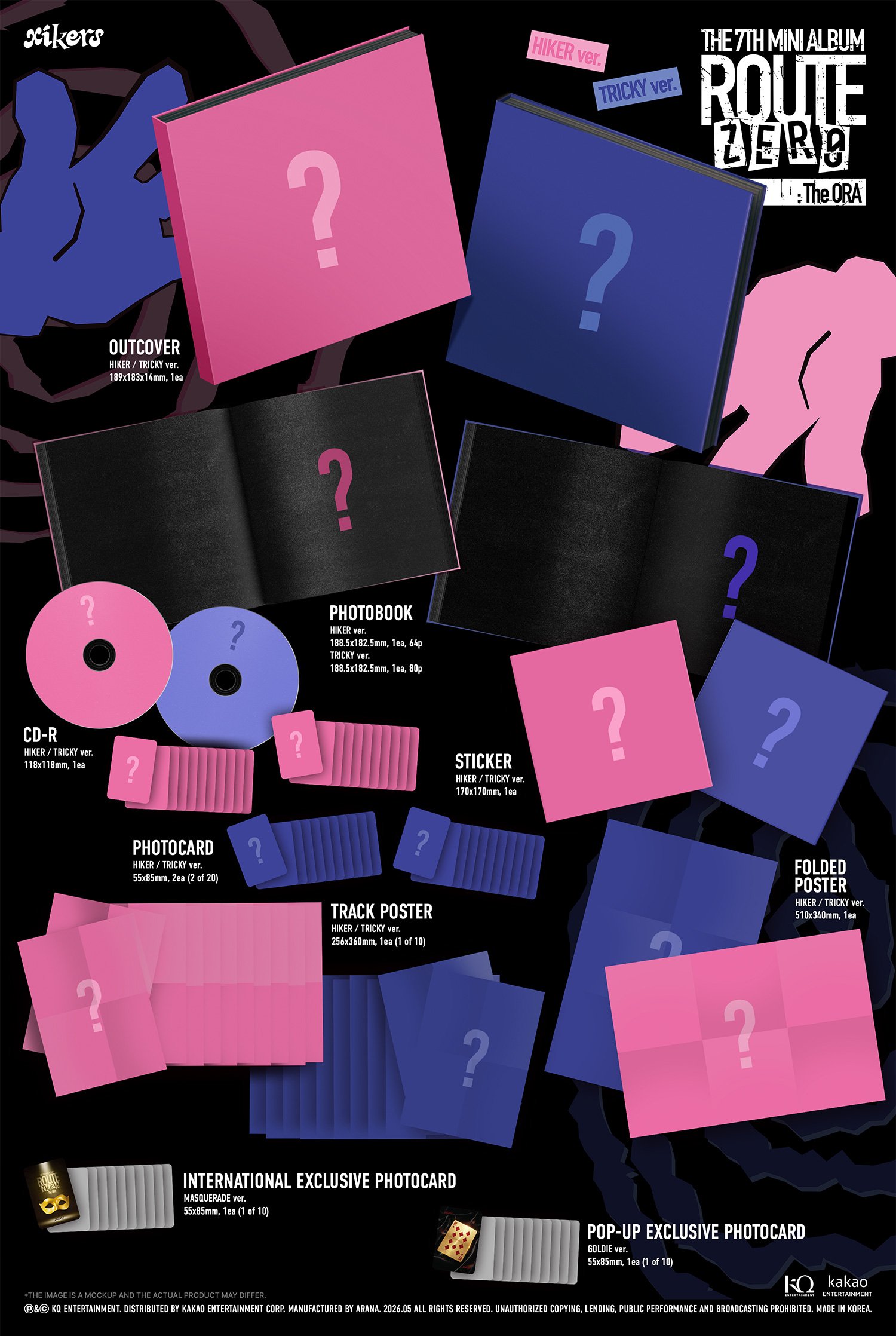 XIKERS - ROUTE ZERO : THE ORA - HELLO82 POP-UP EXCLUSIVE (HIKER VER.) es el séptimo mini álbum físico del grupo masculino de K-POP Xikers, disponible en versión HIKER como edición exclusiva del pop-up HELLO82. Este lanzamiento, titulado ROUTE ZERO : The ORA, marca el inicio de un nuevo universo narrativo para el grupo, tras la conclusión de su etapa "HOUSE OF TRICKY". El álbum está programado para el 22 de mayo de 2026 y puede reservarse en pre-order.